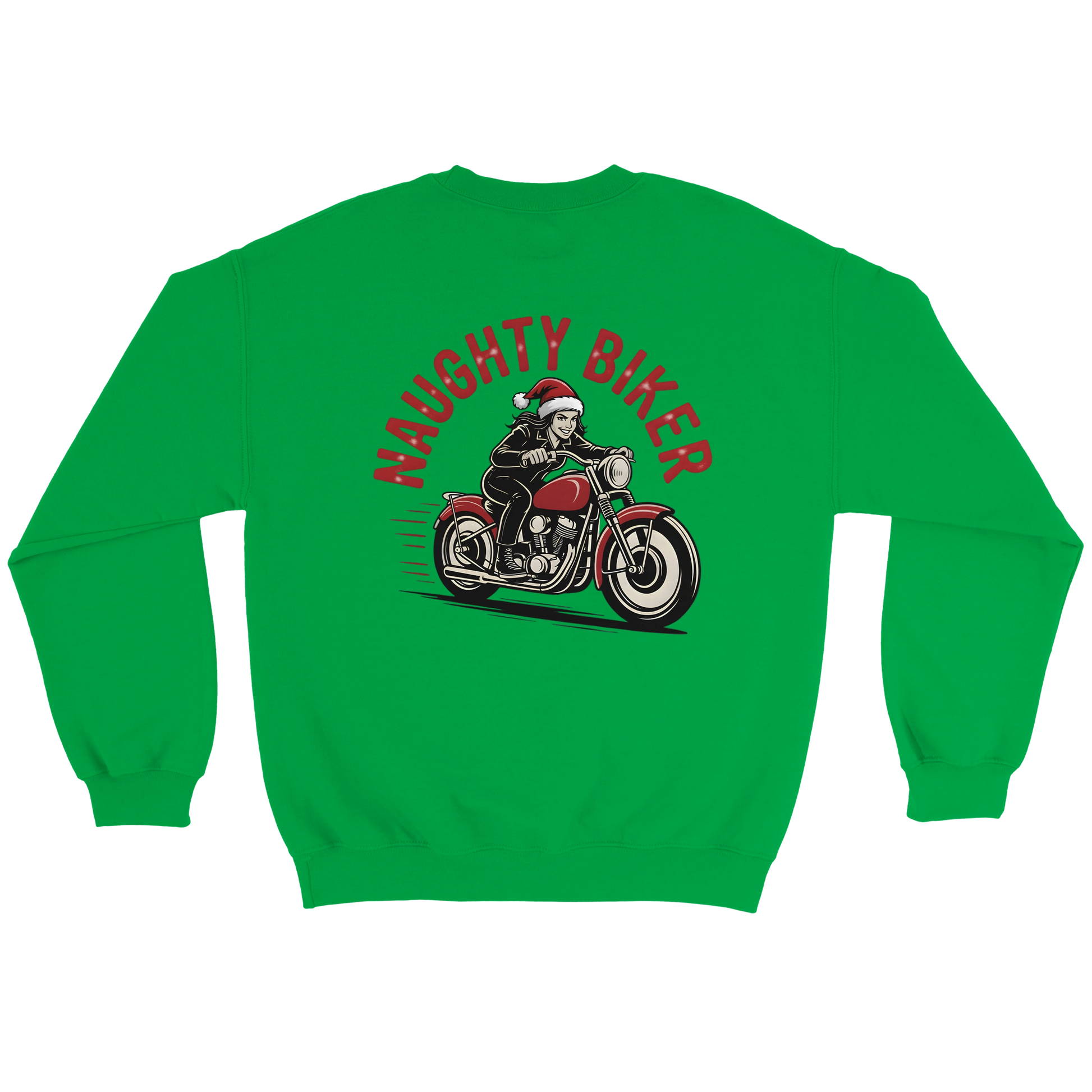 - The perfect sweatshirt for those bikers who want to show off being Naughty/Nice.